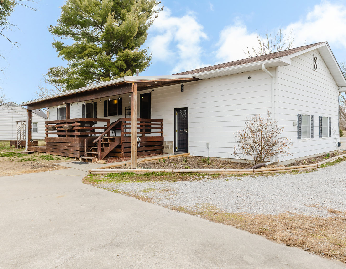 Don't miss your opportunity to own this adorable, move-in ready home in DuQuoin, perfectly situated on a spacious half-acre lot. With an attached one-car garage and an additional two-car detached garage, there is plenty of room for vehicles, hobbies, and storage. Step in from the charming front porch and you'll immediately notice the many recent updates, including new flooring, fresh paint, new ceiling fans, and updated kitchen appliances featuring a gas range. The refreshed half bath adds even more appeal. This three-bedroom home offers an open living and dining area that creates a bright, spacious feel-perfect for everyday living and entertaining. The primary bedroom includes its own attached half bath, while two additional bedrooms and a full hall bath provide comfortable space for family or guests. The freshly painted basement offers excellent usable space, with a separate laundry room and plenty of room for a play area, craft space, storm shelter, or extra storage. Step outside to enjoy the large covered deck-ideal for relaxing or hosting gatherings. Just beyond the detached two-car garage, you'll find a dedicated gardening area ready for growing your own fruits, vegetables, or flowers. Major updates provide peace of mind, including a new roof (2023), new garage door (2025), added concrete around the garage, and a new battery backup sump pump in the basement. The furnace was installed in 2011 and the water heater in 2012. All new kitchen appliances remain with the home, along with the washer and dryer. This well-maintained property offers space, updates, and charm-all in one inviting package.